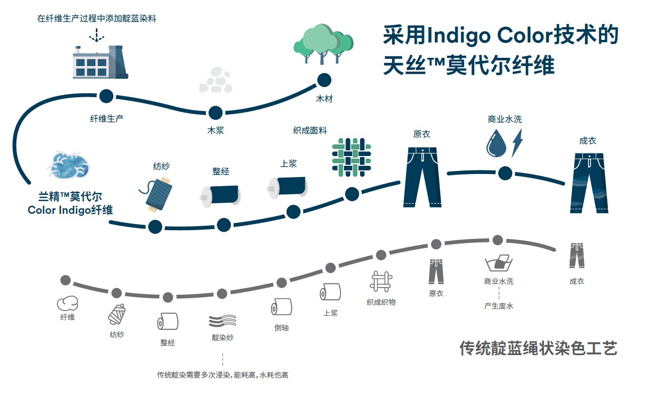 中國棉紡織行業協會副會長王耀表示,在全球新一輪科技革命和產業變革的背景下,未來棉紡行業將呈現以功能化、差異化,智能化、綠色化,專業化、網絡化,服務化、資本化為方向的發展新路徑,而牛仔產業也必然會遵循這樣的發展規律。根據棉紡織行業“十四五”發展指導意見,未來產品開發將更加注重環保性、舒適性、彈性、功能性,蘭精集團推出的Matte(亞光)天絲™️萊賽爾纖維、天絲™️莫代爾x Indigo Color纖維兩款新品與這些需求高度契合,不僅可用于牛仔服飾,還可創造性地應用于家紡等更廣泛領域。