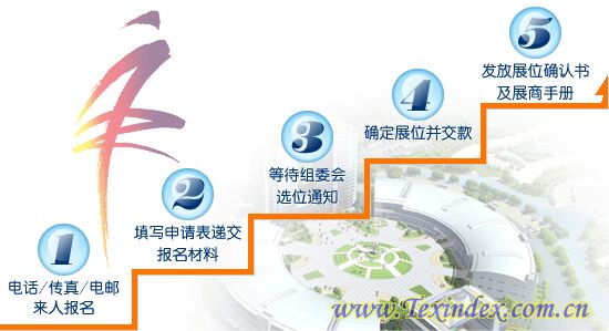 1.確定參展后,向組織單位索取參展申請表并填寫郵寄或傳真至組織單位; 2.申請展位一周內將參展費用全款電匯或交至組織單位; 3.展位順序分配原則:“先申請,先付款,先安排”, 4.參展商在匯出各項費用后,請將銀行匯款單傳真至組織單位; 5.組織單位在收到展臺費用后,展會開始前一個月前寄<展位確認書>給參展商;