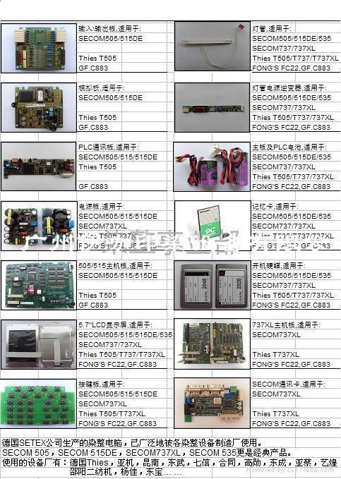 德國SETEX公司生產的染整電腦,已廣泛地被各染整設備制造廠使用。    SECOM 505,SECOM 515,SECOM 515DE,SECOM 737XL(早期型號:SC737XL),SECOM 535更是經典產品。