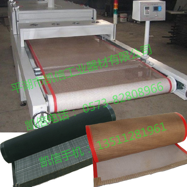 | 特氟龍網(wǎng)格輸送帶采用優(yōu)質(zhì)的玻璃纖維及凱芙拉(芳綸)為基材編織成高強(qiáng)度的網(wǎng)狀基布,后涂覆具有優(yōu)良特性的PTFE(鐵氟龍)樹(shù)脂,制成鐵氟龍網(wǎng)狀烘房輸送帶的基布,再以特有的生產(chǎn)工藝加工成各種規(guī)格的透氣烘干輸送帶。 特氟龍網(wǎng)帶別名:鐵氟龍網(wǎng)帶、聚四氟乙烯網(wǎng)帶、特氟龍網(wǎng)帶、特富龍網(wǎng)帶、特氟隆網(wǎng)帶www.kxptfe.com,咨詢電話18969327650張丹 特氟龍網(wǎng)格輸送帶主要性能特點(diǎn): ◆ 耐氣候性——從低溫到高溫-70℃—260℃攝氏度范圍內(nèi)連續(xù)工作。經(jīng)實(shí)際應(yīng)用,如在250℃高溫情下連續(xù)放置200天,不但強(qiáng)度不會(huì)變低,而且重量也不減少;在350℃高溫下放置120個(gè)小時(shí),重量只減少0.6%左右;在-180℃超低溫情況下不會(huì)產(chǎn)生龜裂,并保持原有的柔軟性 ◆非粘著性——不易粘附任何物質(zhì)。易于清洗附著其表面的各種油漬、污點(diǎn)或其它附著物;漿糊、樹(shù)脂、涂料等幾乎所有粘著物質(zhì)都可簡(jiǎn)單地清除; ◆耐藥劑性——對(duì)絕大部分的化學(xué)藥品和溶劑都不受影響,耐化學(xué)腐蝕,能耐強(qiáng)酸、強(qiáng)堿、王水及各種有機(jī)溶劑的腐蝕; ◆機(jī)械特性——尺寸穩(wěn)定(受熱狀態(tài)下延伸系數(shù)小于5‰),摩擦系數(shù)低(0.05-0.1); ◆ 電氣特性——極為優(yōu)越的絕緣性,防紫外線、紅外線和高頻干擾,防火阻燃; ◆透氣特性——輸送帶的透氣率,減少熱源耗費(fèi),提高干燥效率。 平湖市凱信工業(yè)器材有限公司http://www.kxptfe.com,咨詢電話18969327650張丹 特氟龍網(wǎng)格輸送帶應(yīng)用范圍: ◆紡織印染——印花烘干、漂染布烘干 、面料縮水烘干、無(wú)紡布烘干等烘道、烘房專業(yè)網(wǎng)狀纖維輸送導(dǎo)帶; ◆絲網(wǎng)印刷——松式烘干機(jī)、膠印機(jī)、UV系列光固機(jī)、紙張過(guò)油烘干、紫外線烘干、塑膠制品絲印烘干等烘道、烘房專業(yè)網(wǎng)狀纖維輸送導(dǎo)帶; ◆綜合物品——高周波烘干、微波烘干、各類食品冷凍及解凍、烘烤、包裝物品熱收縮、一般含水份物品烘干、熔劑型油墨的快速干燥等烘房導(dǎo)帶; ◆其他情況——凡需要熱風(fēng)烘干場(chǎng)合及熱加工傳送條件,適宜使用網(wǎng)狀纖維輸送導(dǎo)帶 特氟龍網(wǎng)格輸送帶規(guī)格, 厚度:0.2-1.35mm。 寬度:100-4200mm。 網(wǎng)孔:0.5-10 mm 四方形(4X4 mm,1X1 mm等)。 顏色:淺咖啡色、深咖啡色、黑色、白色。 另:可根據(jù)客戶要求定加工“凱芙拉四氟網(wǎng)布”
