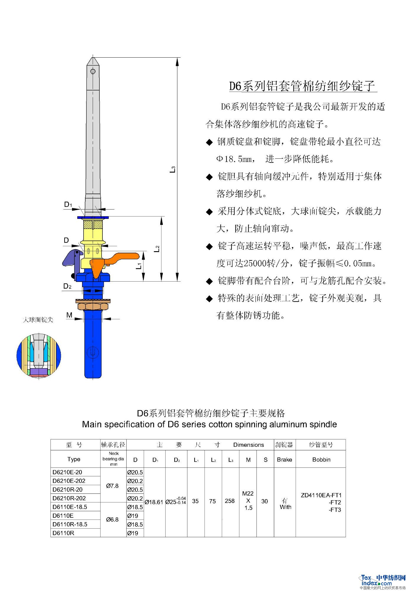產品代碼: D6系列鋁套管棉紡細紗錠子