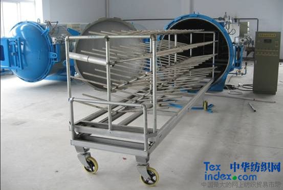 公司生產的蒸紗鍋.它適用于紗線、滌綸線。化纖線。海綿擦布、窗簾定型。氨綸包覆紗線。棉紗。人造絲。滌論。電腦繡花線。縫紉線。針織線。曲珠線。花邊線。拉鏈線等紗線的真空定形。其主要用途是將具備織造條件的連續絲線在合并,加捻后進行定型,即在一定壓力,溫度下穩定捻度,獲得均衡的不扭縮的絲線。