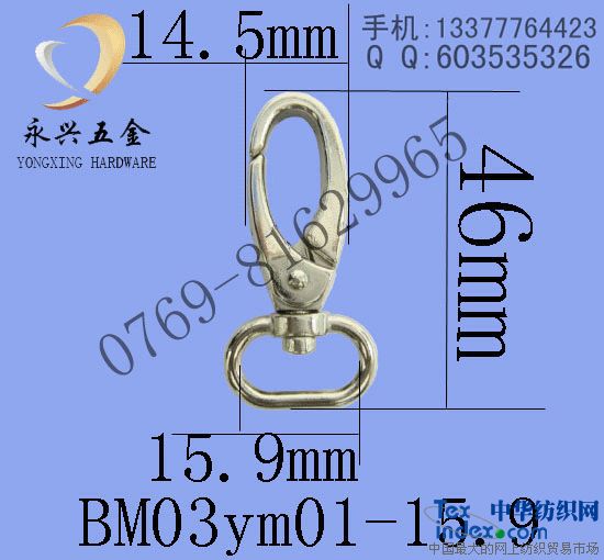 合金扣,又名鋅合金扣,狗扣,狗子扣,狗仔扣,勾扣,箱包扣,寵物扣,繩帶扣,吊牌扣,標(biāo)識扣,鑰匙扣,鑰匙扣配件,匙扣配件。永興五金制品廠自主開發(fā)生產(chǎn)的合金扣有幾十種,品種豐富,款式新穎,工藝精良,質(zhì)量上乘。本廠生產(chǎn)的鋅合金扣雞眼平整,電鍍光滑(無麻點,劃痕,起泡等現(xiàn)象)、彈力十足,比同產(chǎn)品重,廣泛適用于玩具、箱包、手袋、服飾、飾品、禮品、燈飾、文具、家具、電子、首飾、鞋帽、精品、工藝品等產(chǎn)品。由于本廠產(chǎn)品均由自己生產(chǎn),自己電鍍,我們能夠最大限度的保證產(chǎn)品的質(zhì)量,加快出貨速度,同時也避免了給別人電鍍帶來的附加成本,本廠是追求質(zhì)量優(yōu)良,供貨快速的客戶首選供應(yīng)商,歡迎各商家人來電咨詢,來人選購。 本產(chǎn)品優(yōu)勢:專業(yè)電鍍、質(zhì)量保證、廠價直銷、交貨迅速(有大量存貨,訂做一般4天即可交貨) (注:本廠產(chǎn)品有SGS檢測報告,歡迎登陸本公司網(wǎng)站查看或來電索要)