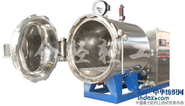 我公司生產的真空定型快速蒸紗鍋適用于以天然纖維、化學纖維為原料的紡織行業和單位,其主要用途是將具備織造條件的連續的絲線在合并、加捻后進行定型,即用于化纖、真絲、羊絨、紗線、窗簾、起皺布、印花布等的定型。即在一定壓力溫度下穩定捻度,獲得均衡的不扭縮絲線,便于后道工序的加工和提高產品質量。對于強捻度的紗線,采用“蒸箱”定型顯得更為重要。 該“蒸箱”的使用特點是:適用范圍廣泛,既能濕熱定型(將飽和蒸汽直接通入筒體內),又能干熱定型(將飽和蒸汽通入夾套內,由筒體內壁散熱)。大門開關輕便,物體裝卸迅速,密封性能好,熱定型效率高,使用安全可靠。定型后的產品諸如強力伸長度等物理機械性能不受影響,保證了產品的質量。