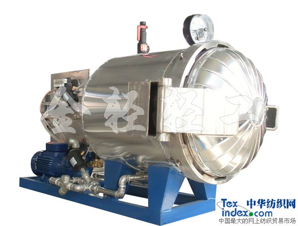 我公司生產的真空定型快速蒸紗鍋適用于以天然纖維、化學纖維為原料的紡織行業和單位,其主要用途是將具備織造條件的連續的絲線在合并、加捻后進行定型,即用于化纖、真絲、羊絨、紗線、窗簾、起皺布、印花布等的定型。即在一定壓力溫度下穩定捻度,獲得均衡的不扭縮絲線,便于后道工序的加工和提高產品質量。對于強捻度的紗線,采用“蒸箱”定型顯得更為重要。 該“蒸箱”的使用特點是:適用范圍廣泛,既能濕熱定型(將飽和蒸汽直接通入筒體內),又能干熱定型(將飽和蒸汽通入夾套內,由筒體內壁散熱)。大門開關輕便,物體裝卸迅速,密封性能好,熱定型效率高,使用安全可靠。定型后的產品諸如強力伸長度等物理機械性能不受影響,保證了產品的質量。